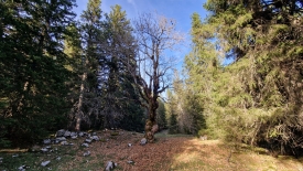 Le sentier qui part du petit pré de Rolle pour aller à La Glacière a été massacré – il n’y a pas d’autre mot – par les engins forestiers. Il faudra des années pour que les ornières boueuses laissées par les chaines montées sur les roues s’effacent. Un désastre.