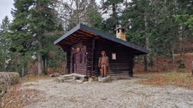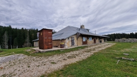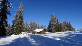 Le chalet des Electriciens et sa citerne où nous nous abriterons pour le casse-croûte.
