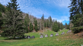 Arrivés aux Pralets, par la combe de la Valouse, nous empruntons notre petit sentier secret qui monte tout droit vers le Mont Sâla. Le sol est détrempé et glissant après deux jours de pluie intense et la plus grande prudence s’impose.