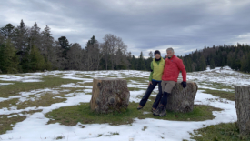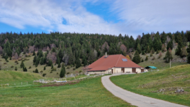 Arrivés à la jonction des sentiers dont un descend sur la route du Vuarne et l’autre vers les Rochers de Pierre Lente, nous choisissons ce dernier. Nous passons par Guinfard avant de rejoindre la route goudronnée qui devrait nous ramener au camping. Mais comme elle est assez fréquentée par des automobiles, nous préférons une route forestière qui nous fait traverser la piste de ski dite du Corps de Garde. Inutile de préciser que les remontées mécaniques sont toutes à l’arrêt. Nous arrivons à la voiture un peu avant 17h.