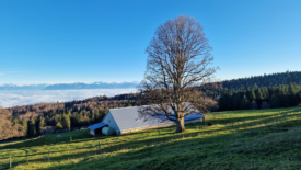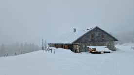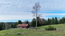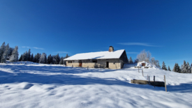 La buvette du Mont Tendre est fermée. Point de bruit de moteur ni d’odeur de diesel. Le générateur a été rangé pour l’hiver.