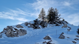 Garés au parking de la Grande Rolat, nous traversons prudemment la route en direction du nord-est. -6° lorsque nous quittons la voiture. Même avec le soleil, nous enfilons deux couches, bonnets et gants.