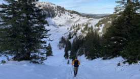 Puis, retour au couvert de la Foirausaz par la piste forestière que nous empruntons parfois à ski.