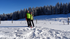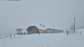 Depuis mardi, je consulte frénétiquement le site de l’hôtel du Marchairuz, et plus spécifiquement la page de la webcam. Difficile d’estimer l’épaisseur de la couche de neige. Une seule solution, aller voir sur place. Et c’est donc pour cela que, même si le temps est maussade, nous partons en reconnaissance.