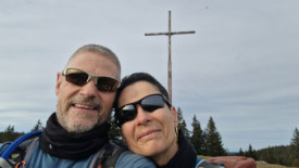 Accrochée à la croix du mont Sâla pour éviter que le vent ne m’emporte.