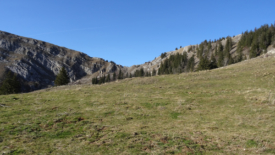 Nous redescendons dans le creux pour ajouter un peu de dénivelé et attraper le sentier qui monte au col de Porte en longeant la falaise.