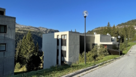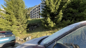 Déjà, il nous faut rejoindre Flaine Forum, 100 mètres plus bas. Ce que nous faisons par un petit chemin zigzagant et caillouteux, qui longe un des ascenseurs, évidement éteint en cette période de l’année.