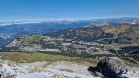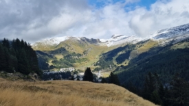 Le dernier 100 mètres de dénivelé, pour rejoindre Flaine Forêt, me laissent une peu haletante. Nous prenons le goûter sur le balcon, avec une vue imprenable sur l’Aup de Véran, là où nous étions il y a quelques heures.