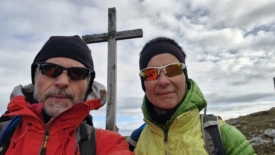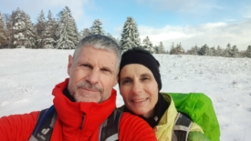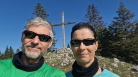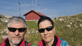 En haut de La Dôle, il y a foule. Une foule casquée et harnachée. Nous retrouvons Romain et Aline, deux randonneurs que nous croisons souvent en compagnie de leur chien, surtout dans le secteur dit Les Rochettes car ils s’occupent d’entretenir la cabane du Rocher. Mais que fait tout ce beau monde ? Il remet en état l’étoile de La Dôle, l’étoile de Noël qui s’allume le 1er décembre et s’éteint début janvier. L’hiver passé, à cause des restrictions énergétiques, elle est restée éteinte… J’aime la contempler lorsque je descend sur Genève, le matin, alors qu’il fait encore nuit.