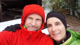 La richesse étant dans la diversité, nous comparons les prédictions de nos applications météo favorites. Celle de Stefano montre une nette amélioration dès 15h. La mienne, heu, … pas vraiment mais je ne dis rien. Nous nous préparons donc et mettons quelques couches de survie dans nos sacs à dos.