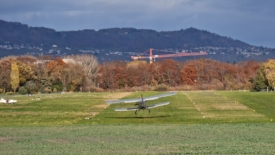 Nous longeons l’aérodrome de Prangins sur toute sa longueur. L’Antonov AN-2, un peu anachronique, attends que quelqu’un lui laisse se défouler les ailes. Pour nous, c’est un non-sens écologique mais pour certains une véritable passion. Voir le site Antonov Suisse Romande. Il faut de tout pour faire un monde… Il faudrait me payer cher pour que je vole dans ce coucou.