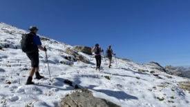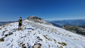 Après une courte pause, l’objectif du jour est fixé. Nous renonçons à la Tête du Colonney. La couche de neige est trop importante. Alix, l’ado de notre groupe propose l’Aup de Véran, dans l’espoir de nous trouver des bouquetins sur le chemin. Proposition acceptée par tous.