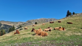 Nous terminons notre promenade chez Claudy, autour d’un café, au Couchant. Nous ne l’avons pas vu de l’été. Sa saison s’est bien passée, malgré quelques soucis de santé. Les dernières bêtes partent demain et il lui faut encore démonter les clôtures avant de rentrer chez lui, le 21 octobre, au Canada. Nous nous saluons joyeusement et nous donnons rendez-vous à l’année prochaine.