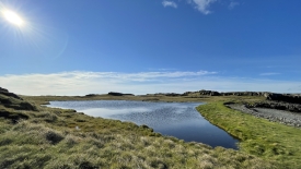 Le sentier se perd parfois dans des herbes marécageuses, particulièrement ici, à proximité de ce petit étang.