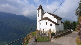 Avant que la pente ne se durcisse, une petite chapelle, pour encourager le paysan et ses vaches. Aujourd’hui plutôt destinée aux randonneurs. Car les vaches, elles, elles montent en camion, si on en croit les deux ou trois petits utilitaires que nous avons vu en hauteur, rasant la barrière. Mêlé au bruit du moteur toussotant, le son des cloches de vaches, à l’intérieur.