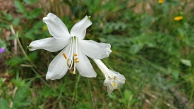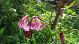 Sur le bord du chemin, un pied de lis martagon se dresse. Les fleurs sont encore en bouton. Quelques mètres plus loin, d’autres pieds, avec, cette fois, des fleurs épanouies. Quelle richesse florale, aujourd’hui !