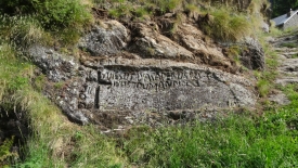 Un panneau parle cette fois d’une écrivaine et poétesse – Alina Borioli – née en 1887 à Ambri, un petit village en bas de la vallée, plus connu pour son équipe de hockey que pour sa femme de lettres. Elle étudia la pédagogie à Genève, à l’institut Rousseau. Sa cécité progressive la força de renoncer à enseigner et elle rentra au pays. Elle décrivit entre autres la vie et le labeur des femmes tessinoises. Un de ses poèmes décrit une tragédie : la noyade d’une famille traversant le lac en hiver alors que la glace n’était pas assez épaisse. Le panneau présente un extrait du poème, en dialecte, avec sa traduction italienne. Si certains mots se ressemblent, d’autres sont totalement différents.