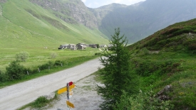 Nous suivons une route gravillonnée qui nous mène vers la fromagerie de l’Alpe Piora.