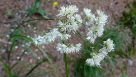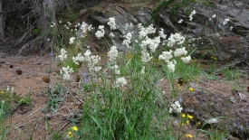 Un peu plus loin, un panneau explique la différence entre les plants de gentiane jaune et de vérâtre. La présence de gentiane jaune est extrêmement sporadique, contrairement à la vérâtre, très présente. Plus intéressant – car nous connaissons bien ces deux plantes et les caractéristiques permettant de les identifier – le panneau illustre un lichen d’un beau vert pomme. Contenant de l’acide vulpinique, un composé toxique pour certains mammifères, les locaux faisaient macérer de la viande avec ce lichen, viande qui était destinée à empoisonner les renards et les loups. Dans un tout autre registre et époque, en Californie, une tribu d’amérindiens trempait des épines de porcs-épics dans des extraits de ce lichen pour les ramollir et pouvoir ainsi tresser des paniers.