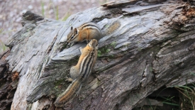 A première vue, on pourrait penser que Tic et Tac jouent. Mais après avoir vu un documentaire au American Museum of Natural History à New York, nous savons que derrière leur pseudo jeu il y a une histoire de nourriture. C’est que l’hiver approche et qu’il faut qu’ils terminent au plus vite leurs réserves, quitte à la voler au voisin.