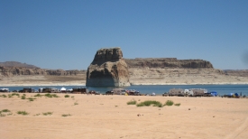 Après avoir quitté Kanab en direction de Page, nous tournons sur la route qui mène à la Lone Rock Beach, une plage de sable qui borde le lac Powell.