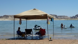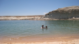Le ranger à l’entrée de la Glen Canyon NRA (National Recreation Area) avait raison : il nous avait prévenu que « même les français trouvent que l’eau est chaude ». Ah ah ah !