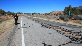 Stefano m’accorde 10 minutes de sieste dans la voiture. Ensuite, nous descendons sur la route principale, la U-95 que nous longeons sur 2 petits kilomètres pour rejoindre le trail head, sans voir aucune voiture d’ailleurs.