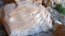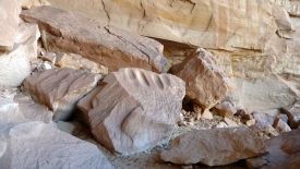 Nous n’avons pas exploré des milliers de site mais c’est la première fois que que nous voyons une telle concentration de métates. Le métate n’est qu’une partie de l’outil. La mano en est l’autre partie : une pierre oblongue et arrondie, que les Puebloans tenaient fermement en main pour écraser le grain, dans un mouvement d’aller-retour.