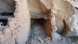 Accolée à la falaise, à l’abri dans l’alcôve, cette construction a mieux résisté.