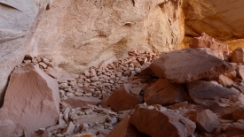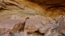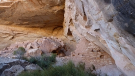 Je lis sur le blog anasazihikes.com l’analyse du site que fait l’auteur. Je la trouve très plausible. La forte concentration de menate peut laisser penser que ce lieu fut peut-être un lieu dédié au traitement du maïs et autres grains. Si cette théorie est fondée, les bords du Butler Wash devaient abriter de nombreuses cultures.