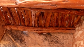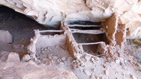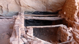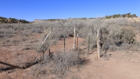 L’état de conservation du site n’est pas excellent. De ce kiva (facilement reconnaissable grâce à sa structure arrondie), il ne reste qu’un fragment de mur et un conduit.