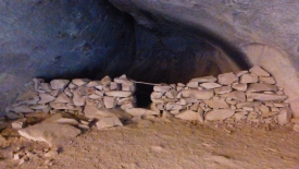 Après ce mur, la pente plonge directement en direction de la falaise, vers le fin de la grotte.