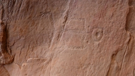 Sur les parois de la grotte, des pétroglyphes et pictogrammes captent notre attention.