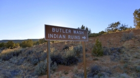 Après avoir visité Hotel Rock, nous reprenons la voiture, passons le Comb Ridge et allons nous garer sur le parking de Butler Wash Ruins.