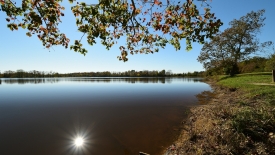 L’eau scintille. Elle n’est pas, et de loin, translucide mais boueuse et verdâtre. Néanmoins, le soleil a raison d’elle.