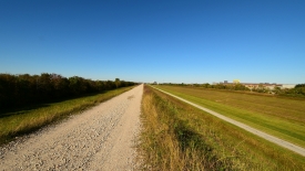 La digue sans fin dans toute sa splendeur. Elle nous semble particulièrement sans fin lorsque nous roulons à vélo et qu’un petit vent mesquin ralentit notre allure.