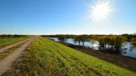 Les digues sont parfaitement rectilignes. Toutes les digues sont praticables à pied ou en VTT et certaines digues sont doublées de pistes parallèles goudronnées.