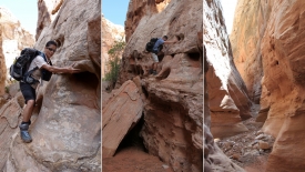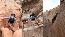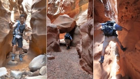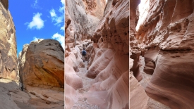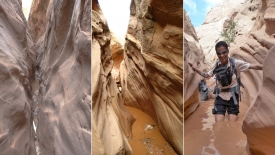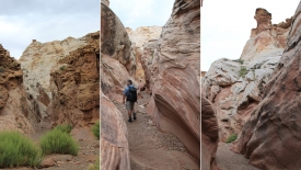 Les parois du canyon sont tantôt très éloignées (1), tantôt très proches l’une de l’autre (2). Ce qui est sûr, c’est qu’on ne s’ennuie pas (3) !
