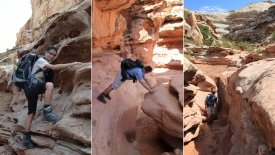 Un passage nécessitant un peu de scrambling nous permet d’éviter ce que nous pensons être la flaque d’eau mentionnée au début de ce billet. Nous sommes tous fiers, d’une part par nos “exploits” et d’autre part parce que nous pensons avoir été dispensés d’enfiler nos water shoes.