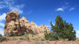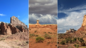 Cela nous prendra un peu plus de temps mais nous offre un paysage magnifique et une vue imprenable sur Temple Mountain (1) (3) et un petit hoodoo rencontré au hasard.