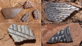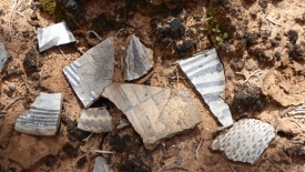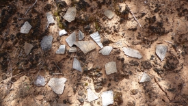 Nos plus belles pièces sont trouvées en contre-bas, sur le midden. Difficile de traduire le terme midden : il s’agit de l’endroit utilisé par les Anasazis pour déposer leurs déchets. Pas étonnant donc qui nous y trouvons beaucoup de morceaux de poterie, sans vraiment les chercher : ils affleurent la surface.