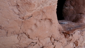 Nous restons pensifs (comme l’année passée d’ailleurs) devant ce toit en très bon état de conservation. Il est recouvert de jacal mais posé sur des pierres à quelques cm du sol. Nous nous attendions à ce qu’il y ait une pièce souterraine, mais non. Bizarre.