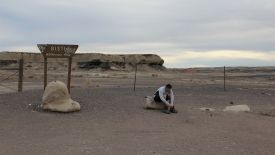 Nous trouvons des troncs pétrifiés, encore prisonniers du sable. Ce tronc-là est immense.