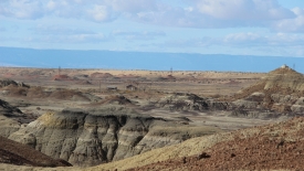 Crap! Le ciel est couvert lorsque nous sortons de notre tanière à Farmington ! Dommage car aujourd’hui, pour visiter les badlands, il nous aurait fallu le même ciel bleu qu’hier. Mais bon, ne nous plaignons pas trop, il ne pleut pas, ne neige pas, ne grêle pas. Nous pouvons donc sortir !
