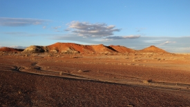 Nous sommes du côté des dune rouges constituées non pas de sable mais plutôt de petits éclats de roche. Dans quelques milliers d’années, nous pourrons certainement parler de sable.