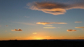 Nous sommes enchantés de notre journée, commencée sous le ciel gris, continuée en beauté sous un beau soleil puis achevée avec un magnifique coucher de soleil.