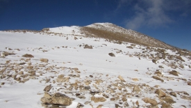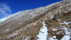 Plus de traces pour nous guider. Stefano branche ses path finding skills (aidé par son GPS…). Pour quelques mètres seulement car le versant sur lequel nous marchons maintenant doit recevoir une bonne dose de soleil. La neige y a disparu.