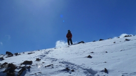 Nous avons retrouvé la neige, le sentier n’est plus qu’une vague trace qui monte tout droit, face à la pente.