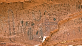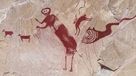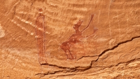 En parlant de contour de craie, voici un dessin pour le moins fantastique. D’aucuns disent qu’il s’agit d’un ptérosaure, reptile volant apparu au Trias (soit il y a environ 230 millions d’année). Certains auteurs concluent que les Native Americans auraient vécu à l’aire des dinosaures.