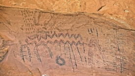 Pour nous rendre à notre dernière activité de la journée, à savoir le Black Dragon Panel, nous revenons à Green River puis prenons la I-70 en direction de l’ouest. Juste après avoir passé le San Rafael Swell puis la San Rafael River, une piste monte vers le nord. Ce qui permet de la repérer est la barrière qui barre la piste. Mais il est recommandé d’avoir le point précis GPS car rien n’est indiqué (38.925130, -110.416835).